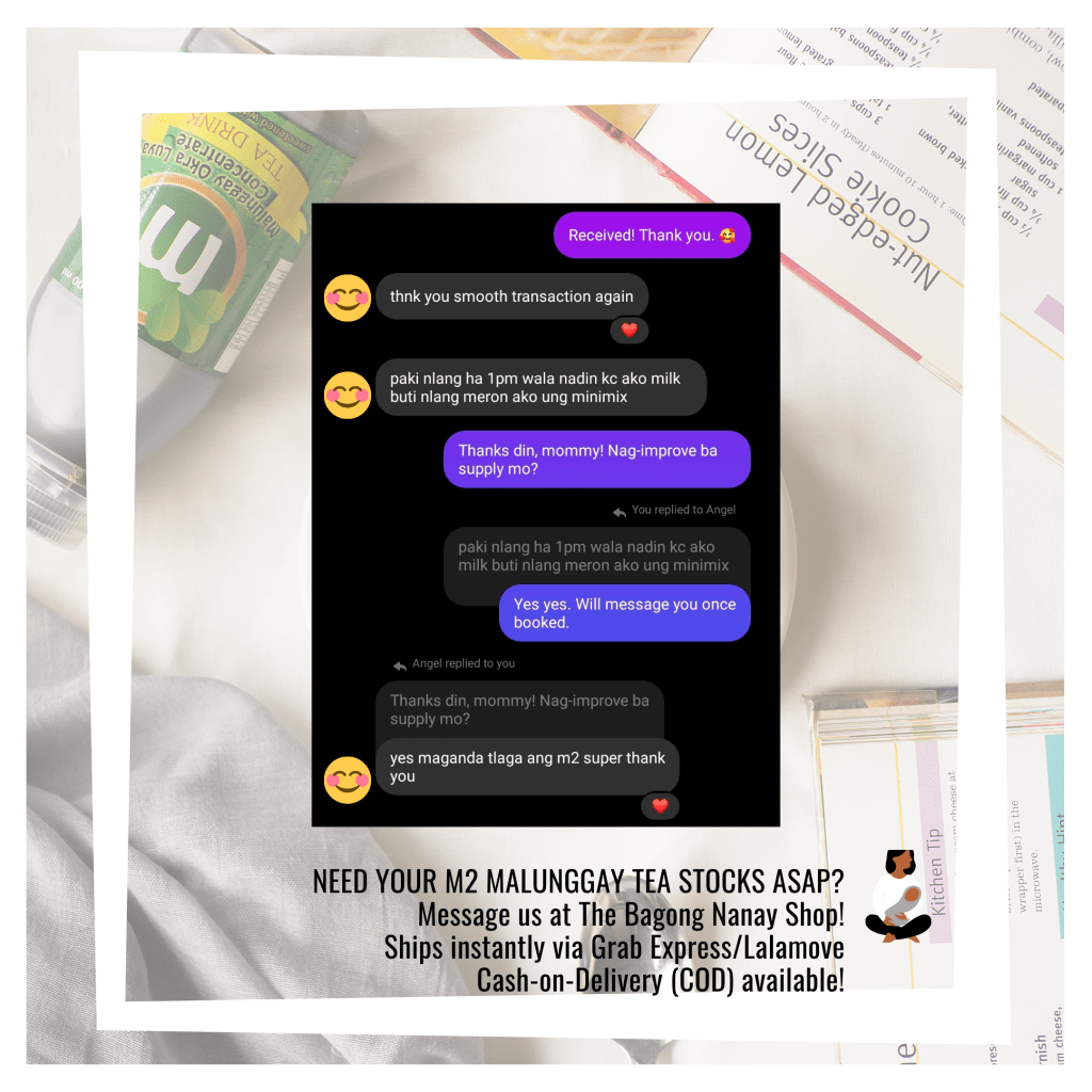 So I spoke with Mommy Ara, the mom behind Cuddle and Coo Malunggay and Acai Berry Drink on Instagram. Kuwento niya, she and her friends came up with the formulation, and she’s very happy and proud of her product. Sila ni husband niya rin ang nagpapack ng orders and nagbebenta, so super inspiring!